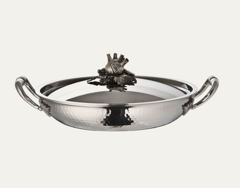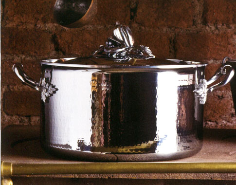 創立於1962年的Ruffoni手工藝術鍋具,源自義大利北邊阿爾卑斯山麓的Omegna小鎮,傳承百年工藝技術,特聘手藝精湛的大師級工匠精心打造而成,每只鍋身皆有不同的紋路,獨一無二;鍋身底部的編號,更顯尊榮;鍋蓋上的黃銅鍍銀蔬果鑲嵌裝飾,特聘米蘭著名銀匠手工打造而成,擁有智慧財產專利著作權。