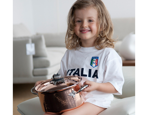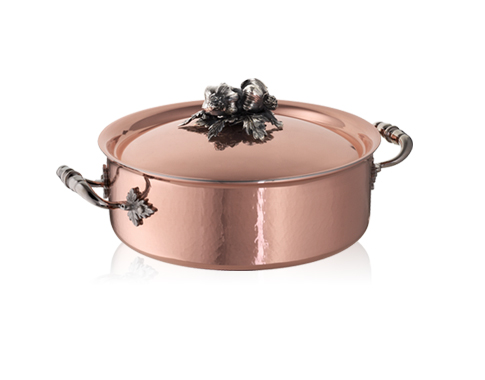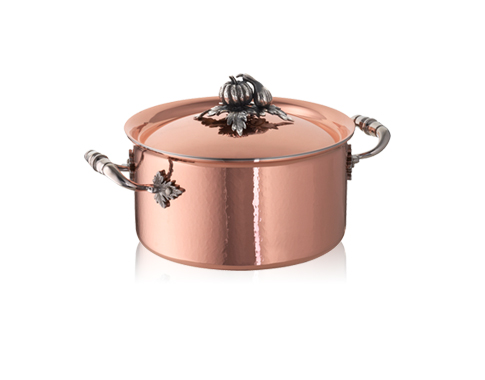 創立於1962年的Ruffoni手工藝術鍋具,源自義大利北邊阿爾卑斯山麓的Omegna小鎮,傳承百年工藝技術,特聘手藝精湛的大師級工匠精心打造而成,每只鍋身皆有不同的紋路,獨一無二;鍋身底部的編號,更顯尊榮;鍋蓋上的黃銅鍍銀蔬果鑲嵌裝飾,特聘米蘭著名銀匠手工打造而成,擁有智慧財產專利著作權。