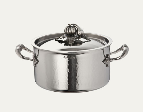 創立於1962年的Ruffoni手工藝術鍋具,源自義大利北邊阿爾卑斯山麓的Omegna小鎮,傳承百年工藝技術,特聘手藝精湛的大師級工匠精心打造而成,每只鍋身皆有不同的紋路,獨一無二;鍋身底部的編號,更顯尊榮;鍋蓋上的黃銅鍍銀蔬果鑲嵌裝飾,特聘米蘭著名銀匠手工打造而成,擁有智慧財產專利著作權。