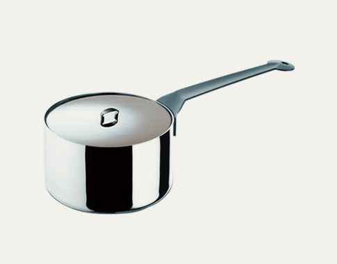 單柄料理鍋-圓柱形的鍋身、鍋緣有開口,方便將煮好的食材,優雅的傾倒而出,適用於烹煮醬汁或熬製濃湯。 The saucepan is usually of cylindrical form, with a long handle and lid, and characterized by a height approximately equal to half its diameter.