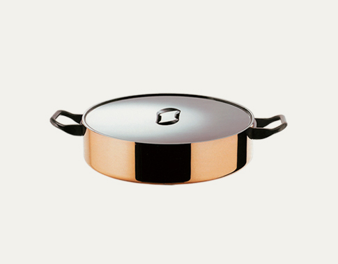 低身雙柄鍋-鍋壁低淺,適合放入烤箱焗烤美食。 The low casserole with two handles is a perfectly cylindrical utensil , with a lid , characterised by a height approximately equal to a third of its diameter. It was always made of heavy tinned copper. |