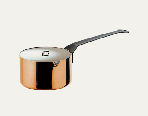 單柄料理鍋-圓柱形的鍋身、鍋緣有開口,方便將煮好的食材,優雅的傾倒而出,適用於烹煮醬汁或熬製濃湯。 The saucepan is usually of cylindrical form, with a long handle and lid, and characterized by a height approximately equal to half its diameter.