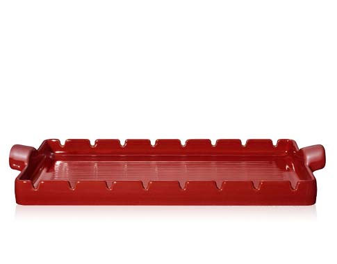 | 陶,自遠古時代即被運用,其受熱均勻、保溫效果佳,陶土的毛孔可保持食物水分不流失,保存食物鮮甜好滋味。 陶土是安全的材質,不若鐵或不鏽鋼,因長時間加熱可能與食材產生化學作用而釋出毒素。 燒烤盤 新的多功能燒烤盤讓您更能輕鬆享受燒烤樂趣,避免讓食物及直接觸火源並可將烤肉串直接放置於特殊設計的凹槽中以方便的烹調,更可以藉由其均勻受熱的特性用於簡單加熱食物。本燒烤盤可用於所有的烹調加熱器具,甚至是烤箱或微波爐,並能用於洗碗機。 |