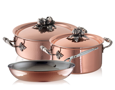 創立於1962年的Ruffoni手工藝術鍋具,源自義大利北邊阿爾卑斯山麓的Omegna小鎮,傳承百年工藝技術,特聘手藝精湛的大師級工匠精心打造而成,每只鍋身皆有不同的紋路,獨一無二;鍋身底部的編號,更顯尊榮;鍋蓋上的黃銅鍍銀蔬果鑲嵌裝飾,特聘米蘭著名銀匠手工打造而成,擁有智慧財產專利著作權。