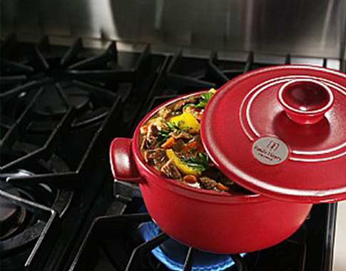| 法國是藝術文化之國度,Emile Henry鍋具結合傳統與創新,富含人文情感與實用性。其多樣顏色,例如:玫瑰紅、蘋果綠、茄子紫、橄欖綠等色彩,皆是研發團隊參考每年巴黎的Fashion Show流行趨勢,輔以獨家調色技術及先進的科學製作技術打造色澤高雅鮮豔、造型獨特的塔吉鍋、圓形及橢圓形的慢燉鍋,讓人眼睛為之一亮。 | |