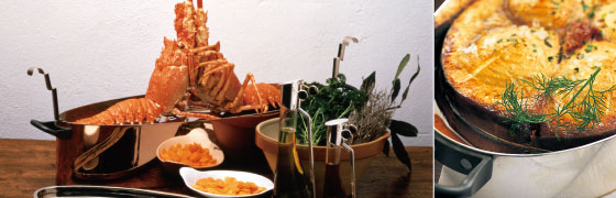 橢圓形海鮮蒸鍋,附鍋蓋、活動式鍋架,可隨食材調整鍋架高度;非常適合烹煮大型魚類及龍蝦等頂級食材。
