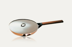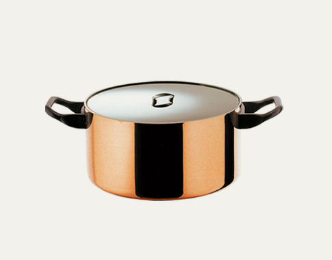 雙柄中身湯鍋-法文為Faitout,意謂「萬能鍋」,常用於燉煮類食材,例如:燉肉、燉飯等。 The round casserole with two handles is a perfectly cylindrical utensil with a lid,characterised by a height approximately half its diameter.The nineteenth-century casserole was made of heavy-gauge copper (copper is an excellent heat conductor).It is used for Braising and Stewing, for the method of cooking known as casserole with lid and for making risotto. |
